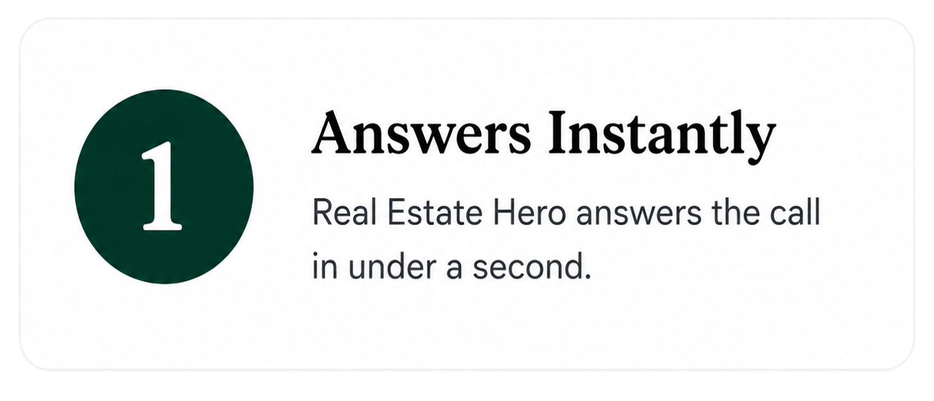 Never miss another opportunity. Real Estate Hero answers inbound and outbound calls, qualifies leads, follows up automatically, and books more appointments 24/7.