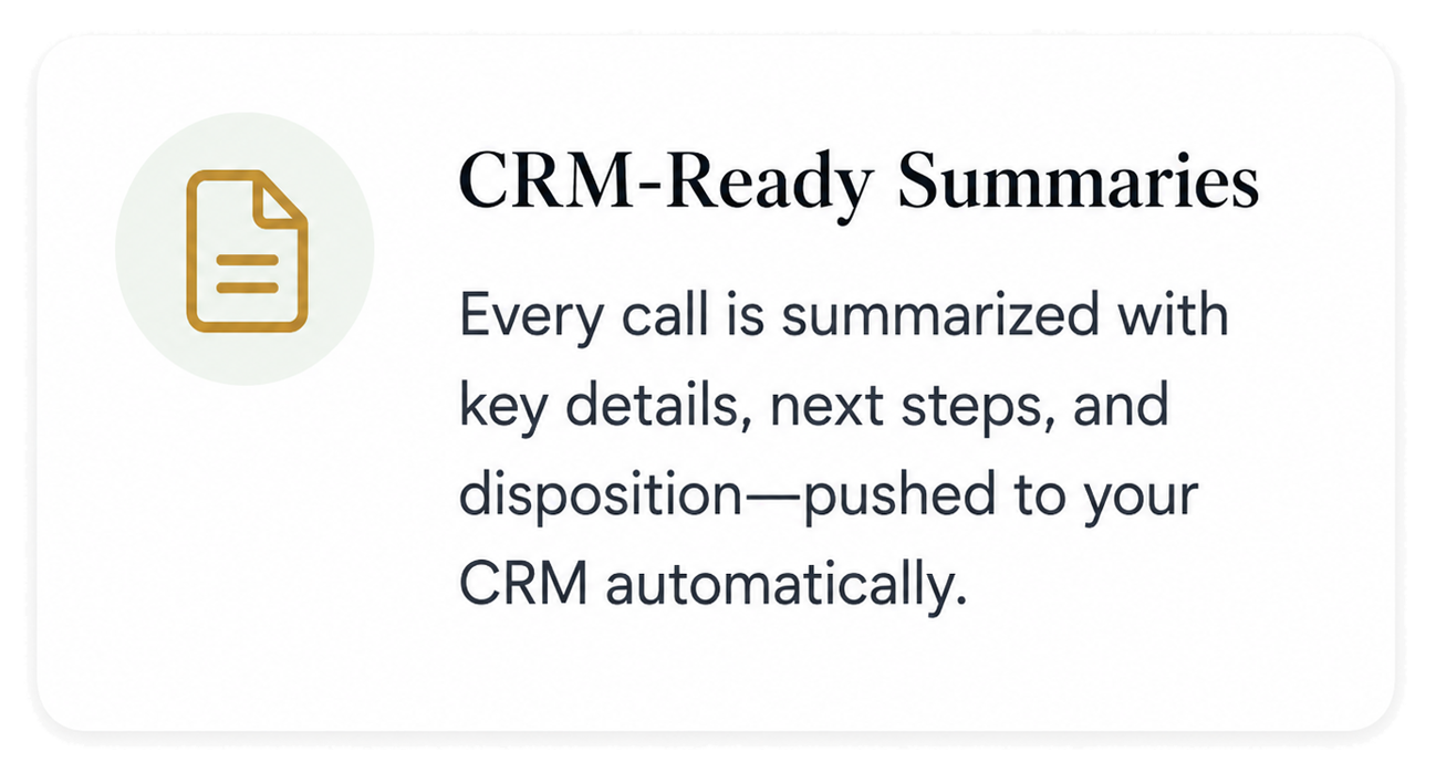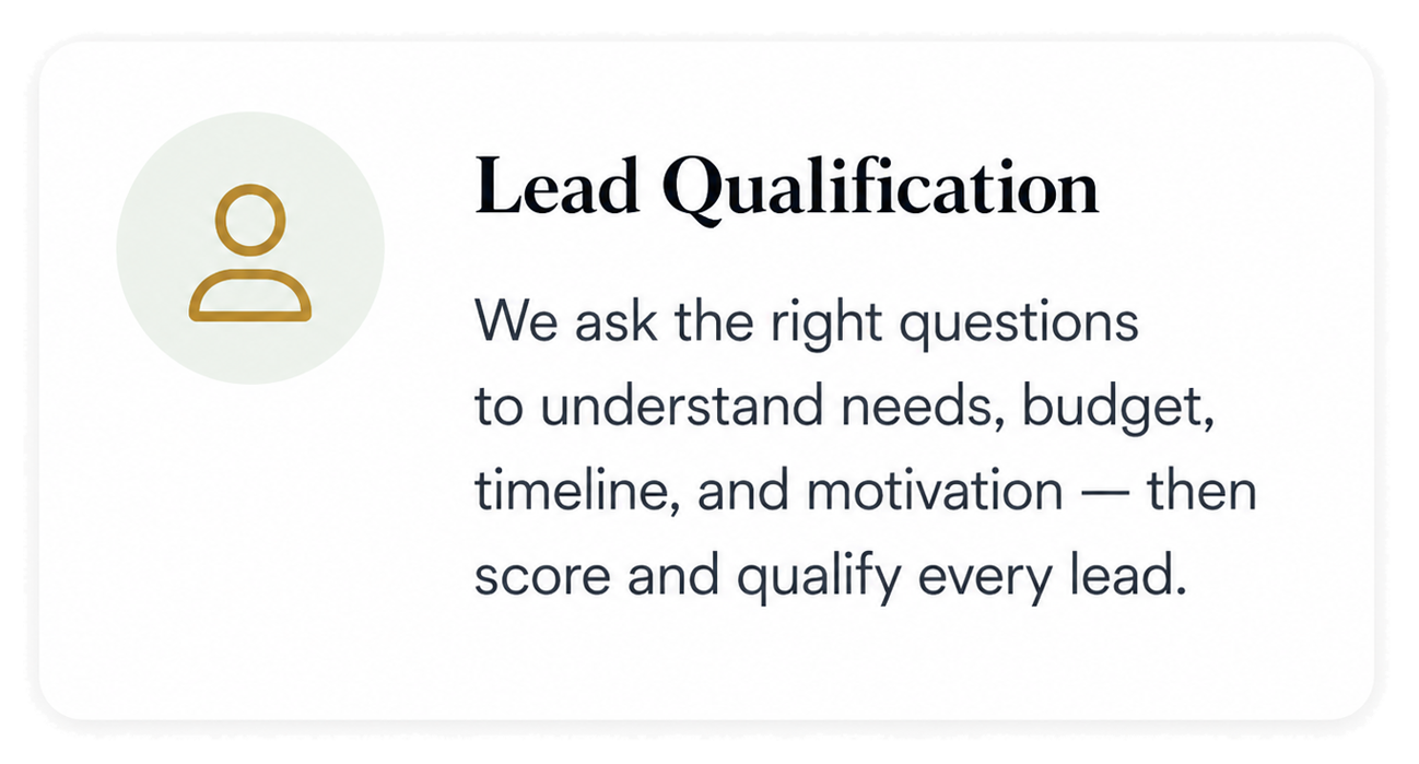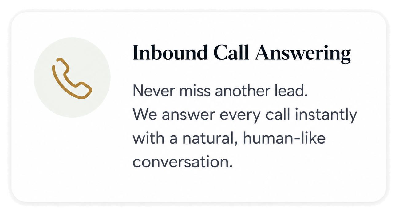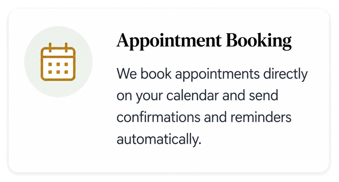 Our AI receptionist manages every call, qualifies leads, books appointments, follows up automatically, and integrates with your existing CRM. No tech knowledge required.